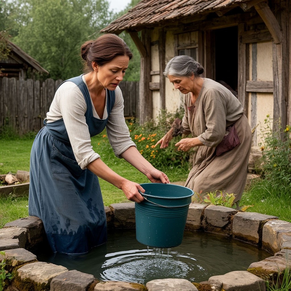 «Колодец... Надо сначала воды принести», — прошептала Анна, направляясь к знакомому срубу.