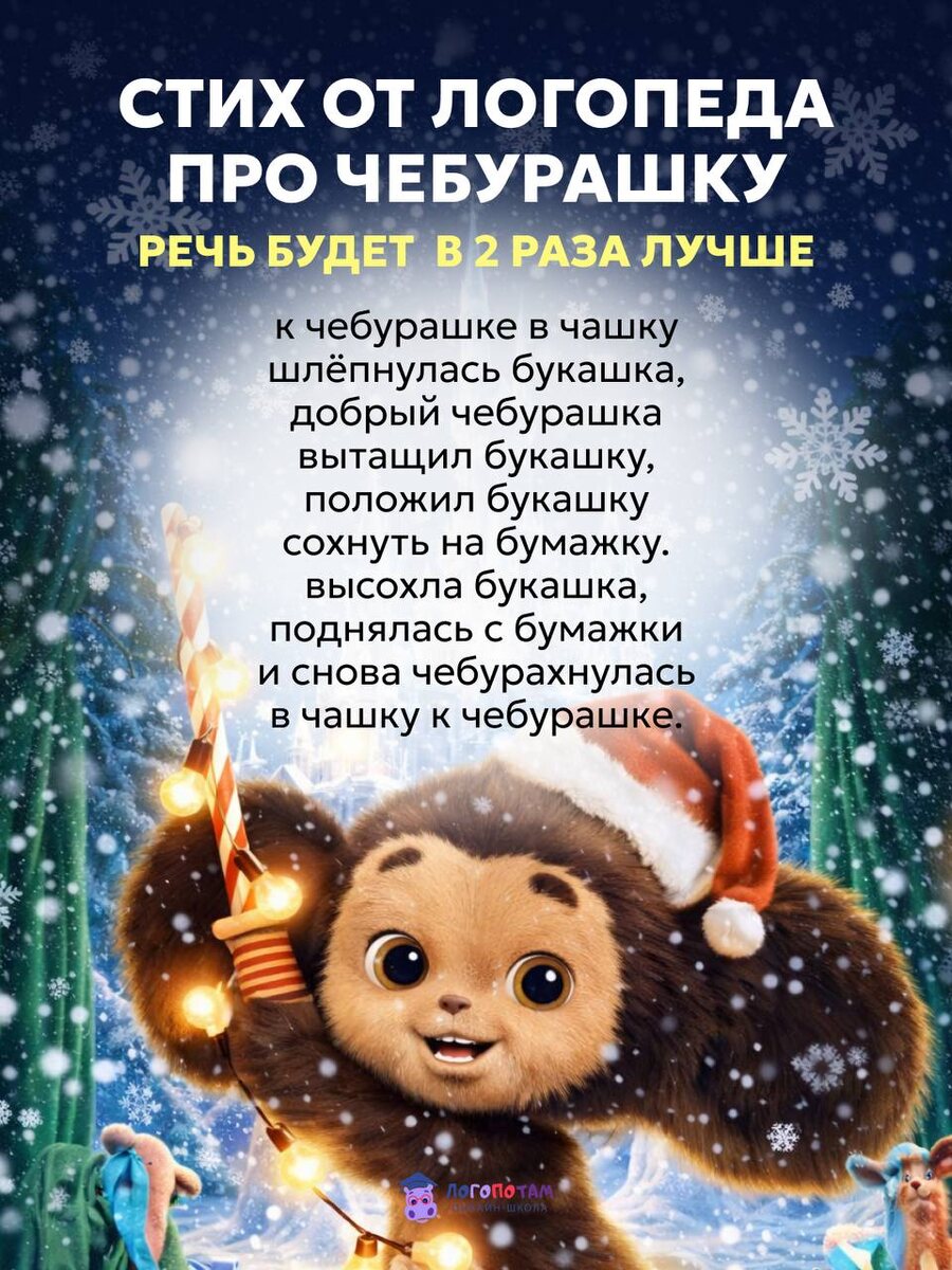💜 Стих про Чебурашку для красивой речи от логопеда!