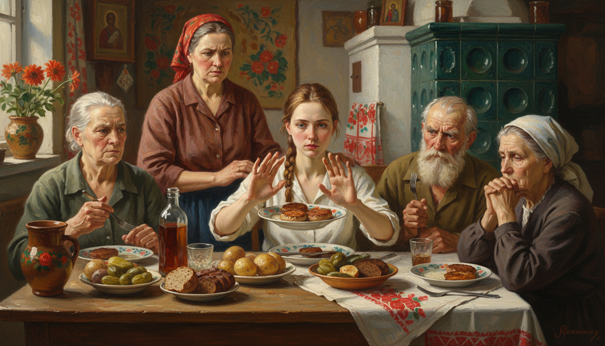 Мама поставила передо мной тарелку с котлетами и замерла. Я сказала «спасибо, я больше не ем мясо», и атмосфера на кухне изменилась мгновенно. Тётя Лена вздохнула так, будто я призналась в чём-то постыдном. «Опять эти модные штучки. Человек создан есть мясо, у нас клыки для этого». Я попыталась объяснить про этику, экологию, здоровье. Получилось хуже. Дедушка отложил вилку. «Значит, мы всю жизнь неправильно жили?» Вот тогда я поняла — дело не в котлетах. Когда ты отказываешься от мяса, люди слышат нечто другое. Будто ты осуждаешь их выбор, их традиции, их заботу. Мама готовила эти котлеты с утра, вкладывала любовь. А я отказалась. Прошло три года. Семейные обеды всё ещё напряжённые, но я научилась различать, где настоящая обида, а где просто непонимание. Бабушка однажды призналась: «Я боюсь, что ты заболеешь». За агрессией родственников часто скрывается страх. Они читали в советских учебниках, что без мяса не вырастить здоровых детей. Для них отказ от животного белка — это буквально о