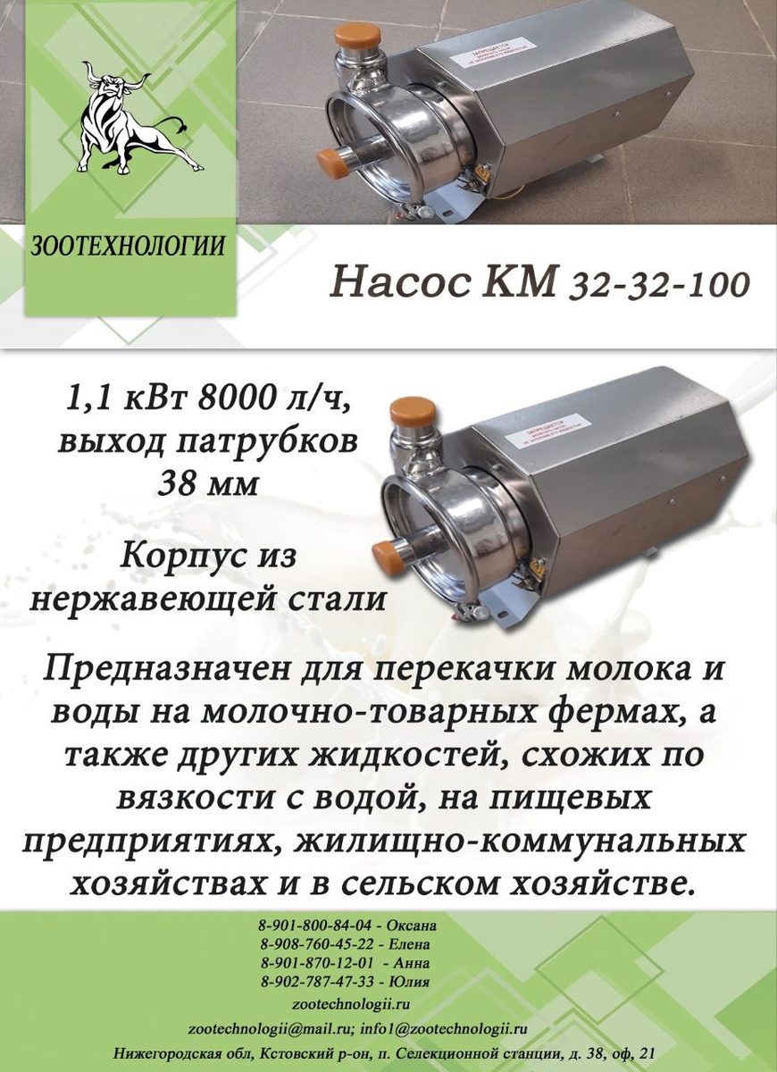 Добрый день. 🛠️ В продаже молочные насос, КМ который предназначен для перекачивания разных жидкостей в различных сферах молочной промышленности. ⚙️ Насос КМ-32-32-100 применяется для перекачивания молока и воды на молочно-товарных фермах, а также других жидкостей, схожих по вязкости с водой, в пищевой промышленности, жилищно-коммунальных хозяйствах и сельском хозяйстве. Оставить заявку можно у наших менеджеров: Оксана: 8-901-800-84-04 Светлана : 8-908-760-45-22 Анна: 8-901-870-12-01 Юлия: 8-902-787-47-33 Читайте нас в Дзен (https://dzen.ru/zooteh) ✅ #Молочные_насосы