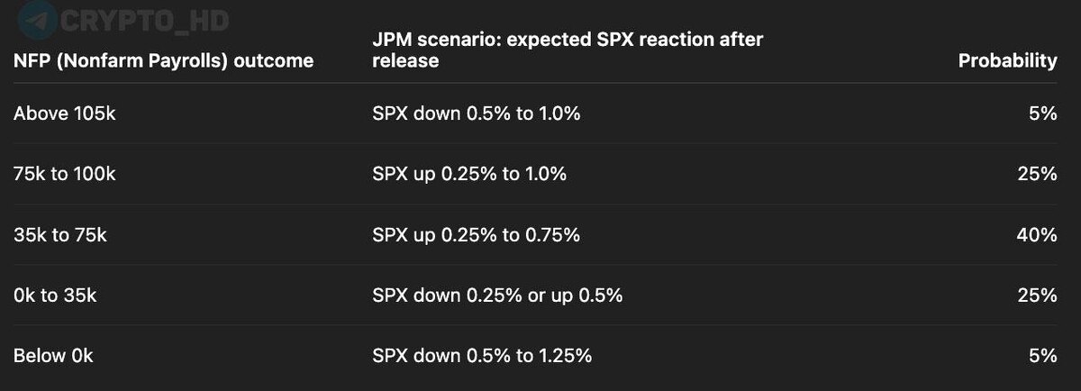 🔥 Прогноз реакции рынка на отчет Nonfarm Payrolls от JPMorgan (16:30 мск