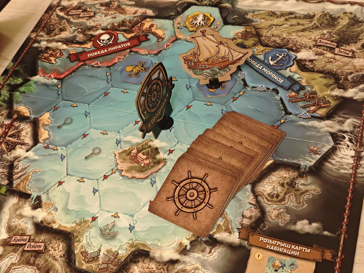 5 января мы ездили к нашим друзьям на День Рождения! Разумеется, я повез настолочки! И знаете что? Мы даже смогли поиграть (причем, не в самые популярные за нашим столом игры). Перед поездкой Ксюша насчитала 8 человек, я решил взять Кто накормит Кракена. Но по факту нас было 5. Что ж, не лучший состав для игры, но раз уж взял, опробовать надо))) Мы решили взять на выбор 3 моряка, 2 пирата и 1 культиста, чтобы было либо 3 на 2, либо 2 моряка, 2 пирата и 1 культист. Чтобы до конца не было понятно, есть ли культист в команде. И роль культиста выпала мне, чем я бы не очень доволен😂Напоминаю, что если у пиратов и моряков адекватные условия победы (довести корабль до своей бухты), то культист побеждает либо если он доплывет до его точки, либо его скормят Кракену. И вот наш корабль попадает на клетку, где необходимо сбросить кого-нибудь на корм Кракену. Я начинаю выдавать самые бредовые идеи, постоянно меняя свои предположения, кого же выбросить за борт. В результате всем это показалось под