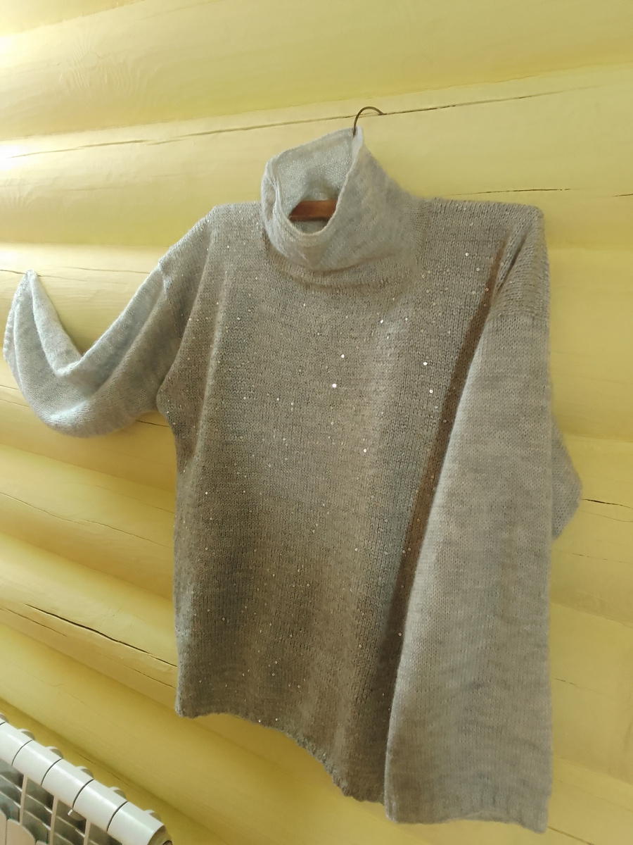 Пыталась с разным освещением, чтобы пайетки были поярче выделены. Пайетки только спереди, на рукавах и спине их нет.