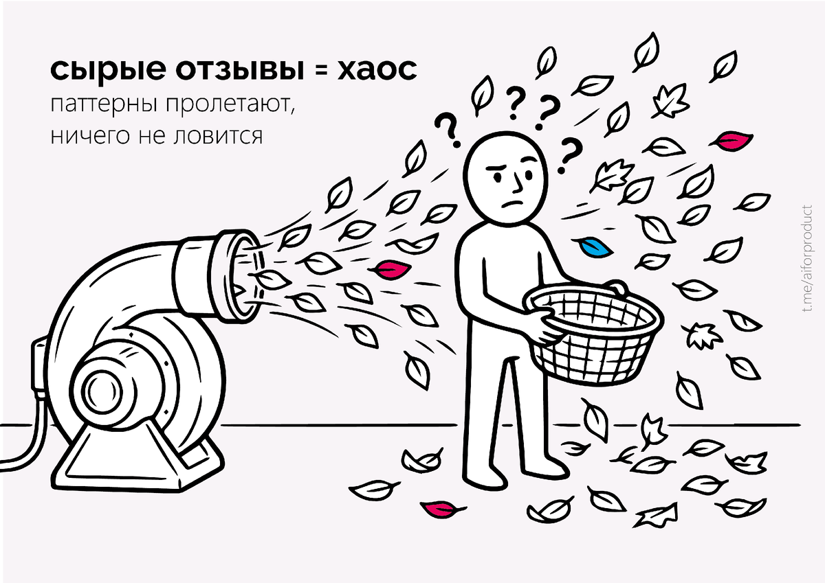 У вас 100 тикетов поддержки. Или 200 отзывов из сторов. Или 50 ответов на NPS-опрос. Надо понять, что болит у пользователей и что чинить первым.