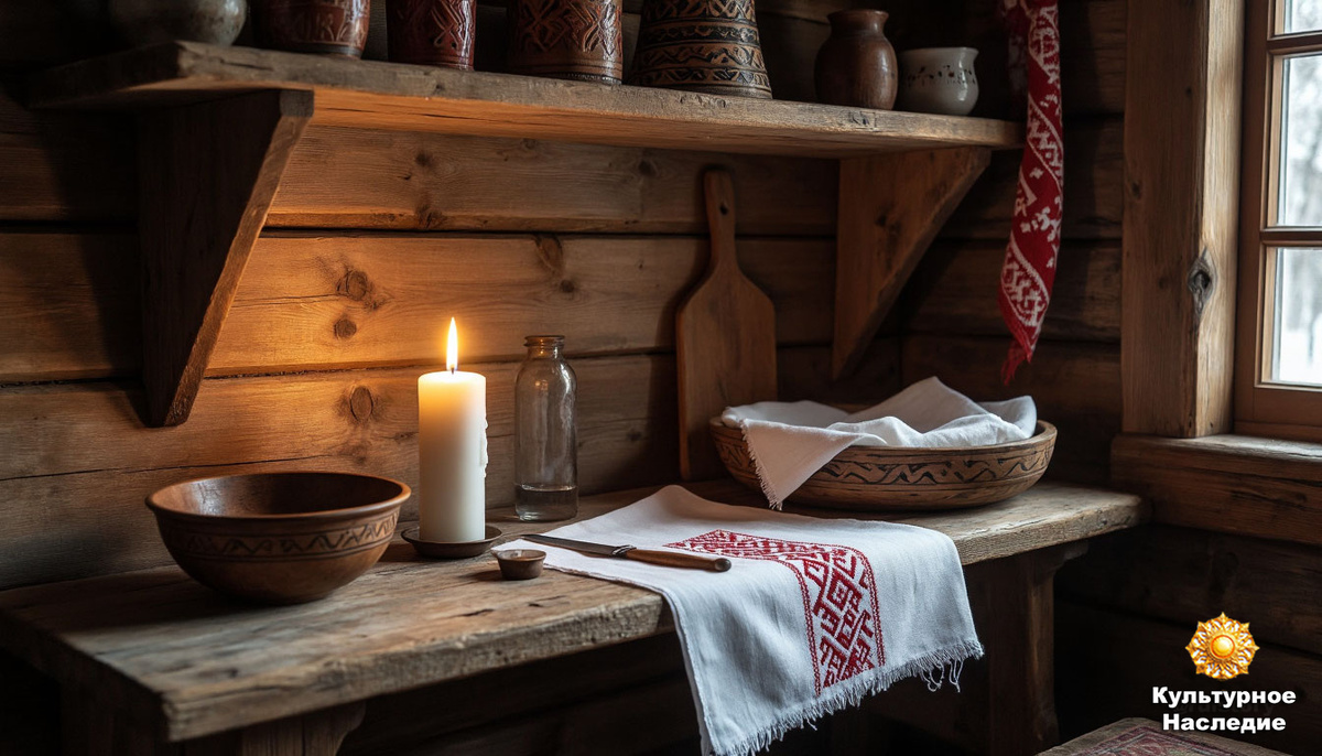 - Создайте простой алтарь: чистая белая или красная ткань, чаша с водой или хлебом с солью, зажжённая свеча. Можно положить предмет, символизирующий род (фамильную вещь, камень).