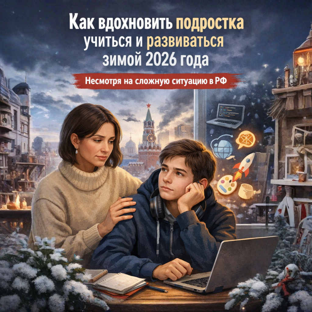 Зима всегда непростое время для подростков. Короткий световой день, усталость, учебная нагрузка. А в 2026 году к этому добавляется общее напряжение. Неопределённость в экономике, тревожные новости, разговоры взрослых о «сложных временах». Многие мамы замечают, что ребёнок стал апатичным, учёба даётся тяжелее, мотивации почти нет. Подростки очень тонко чувствуют состояние взрослых и общий фон вокруг. Даже если с ними напрямую не обсуждают происходящее, они всё равно считывают тревогу, усталость, страх за будущее. В такой ситуации учёба для них часто теряет смысл: «А зачем стараться, если всё нестабильно?» Поэтому вдохновение начинается не с оценок и кружков, а с ощущения опоры и смысла. Мы не можем изменить внешние обстоятельства, но можем показать ребёнку то, что остаётся в его власти — навыки, знания и внутренняя устойчивость. 1. Смещайте фокус с «надо» на «пригодится».