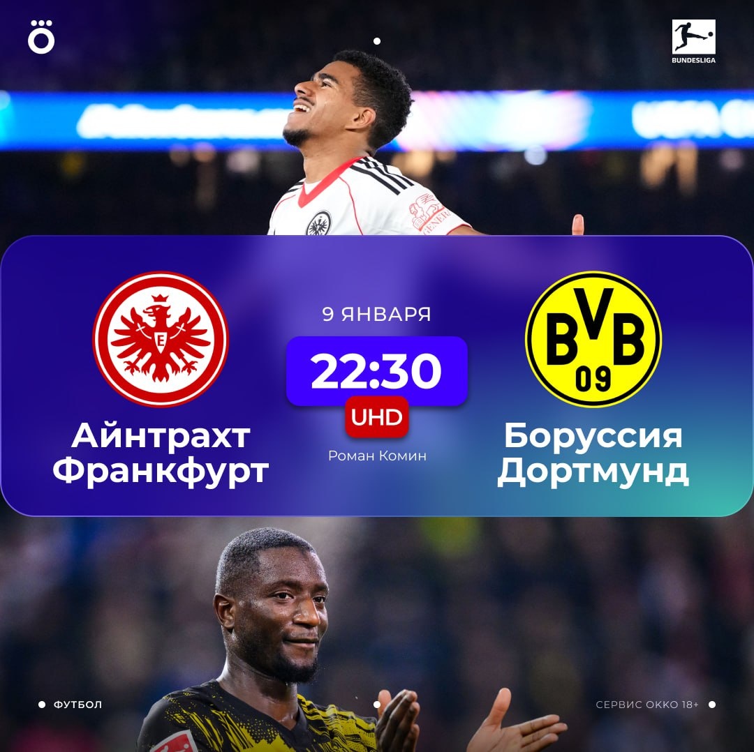 🤩 Покажем матч «Айнтрахт» – «Боруссия Д» в лучшем качестве 4К!