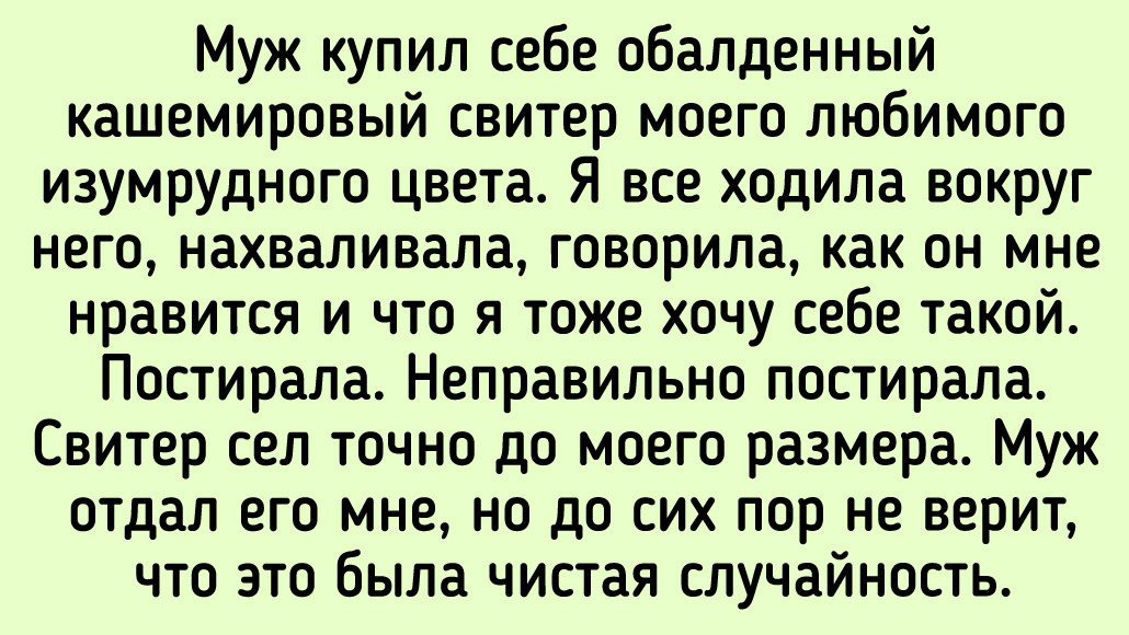 Когда мне было 19, у меня угнали машину. Несколько месяцев спустя я ехал уже на новом автомобиле, и угнанная машина обогнала меня! В какой-то момент водитель даже поравнялся со мной и помахал рукой, полагая, что я с ним соревнуюсь. Я ответил лишь мрачным взглядом. Проследил за ним до дома 190 км. Вызвал полицию и вернул свою машину. Когда я думаю об этом удивительном совпадении, у меня мозг кипит.