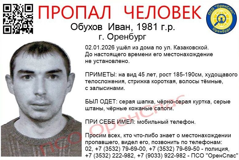 Мужчина 2 января ушёл из дома по улице Казаковской и пропал. Розыском оренбуржца занимается полиция и волонтёры ПСО «ОренСпас». До сих пор об Иване ничего неизвестно. Приметы: на вид 45 лет, рост 185-190 см, худощавого телосложения, стрижка короткая, волосы тёмные, с залысинами. Был одет: серая шапка, чёрно-серая куртка, серые штаны, чёрные кожаные сапоги. Всех оренбуржцев, кто что-либо знает о местонахождении пропавшего, видел его, просят позвонить по телефонам: 02, +7 (3532) 79-69-00, +7 (3532) 79-69-50 — полиция, +7 (3532) 222-982, +7 (9033) 922-982 — ПСО «ОренСпас». Фото: ПСО «ОренСпас» 18+