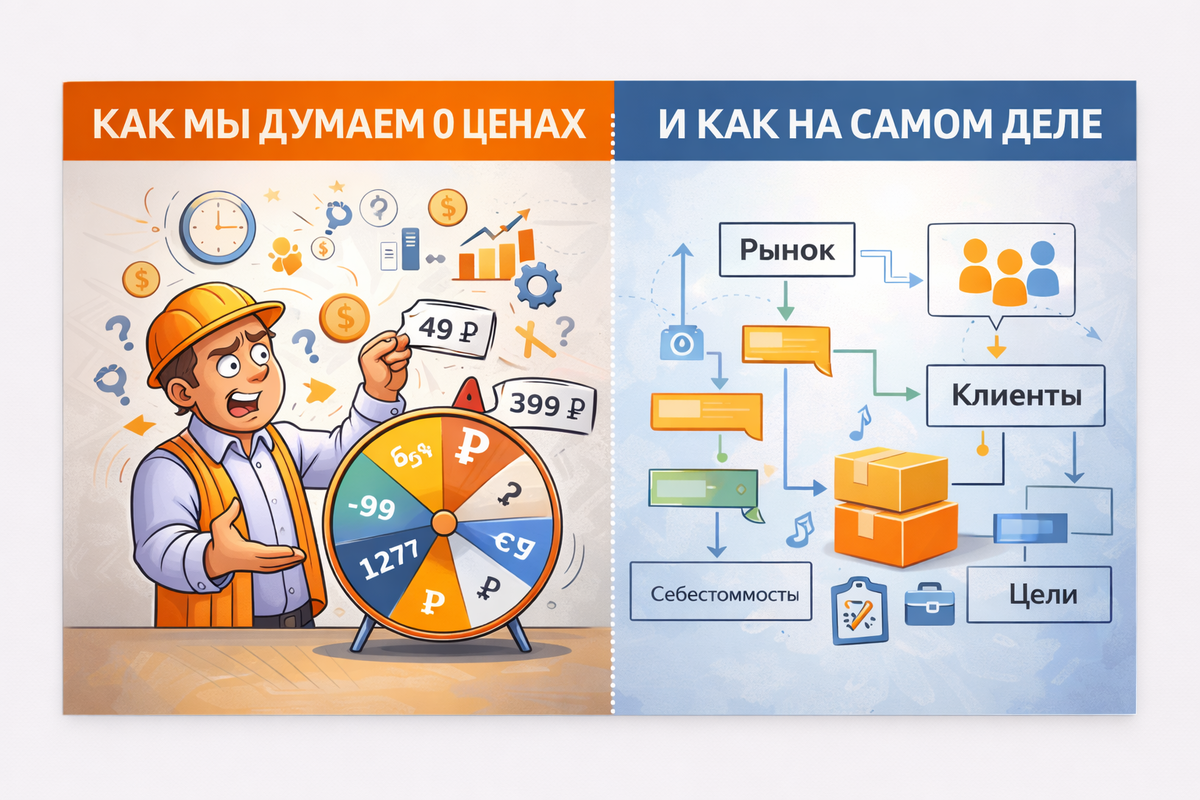 Цена кажется простой вещью — цифра в магазине или в договоре. Но на практике цена почти никогда не равна стоимости производства плюс наценка. Она формируется на пересечении экономики, рынка и поведения людей. Ценообразование — это управленческое решение, от которого напрямую зависит выживаемость бизнеса. Ошибка в цене может обнулить спрос или прибыль даже при хорошем продукте. Разберёмся, как этот механизм работает на практике. Ценообразование — это процесс определения цены товара или услуги с учётом: Важно: цена — это не объективная величина. Это гипотеза, которую рынок либо принимает, либо отвергает. Если цена не соответствует ожиданиям клиентов или возможностям рынка, продажи не происходят — вне зависимости от качества продукта. Себестоимость отвечает на вопрос: сколько стоит произвести.