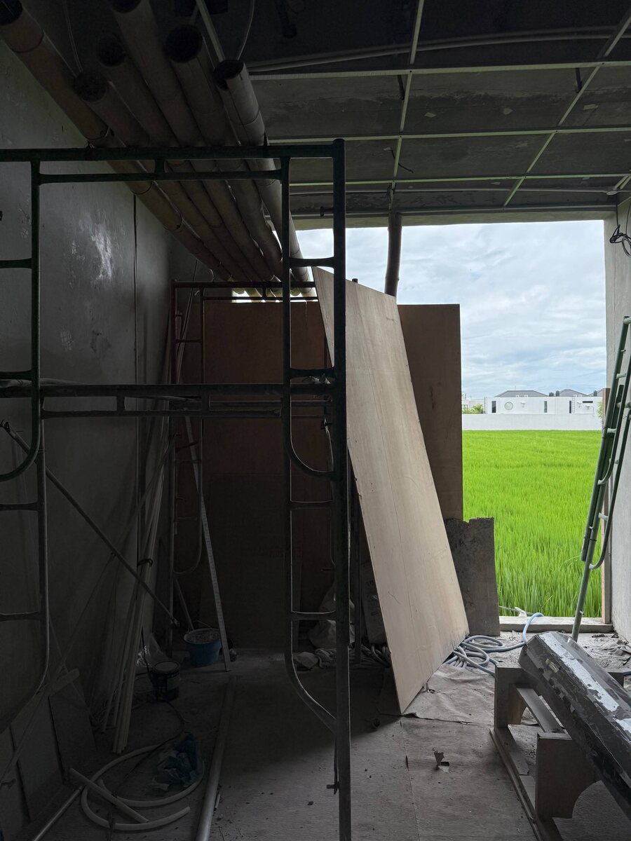 🏝️ Если я скажу, что все идет плавно — вы точно не поверите. Есть свои сложности в ремонте: нам поставили не ровно колонны, на которые ушло много времени, бригадир решил их сносить и делать новые. Все это здорово, только вот 18 января мы объявили открытие. Позже нельзя. Многие улетают друзья с острова, да и строим так-то мы магазин уже с ноября, уже пора бы открываться, бюджеты у нас не резиновые. Многое из мебели к открытию не приедет, но я уже с голыми стенами готова открываться, все же в жизни надо попробовать. На днях должны вывеску повесить. Уже хорошо, хоть нас найти можно будет) 😃 Смотрите зато какой у нас вид открывается на рисовые поля, можно одновременно шопиться и медитировать. 🧘 Ну а пока, мы поднимаем вверх зожные шотики и надеемся на шустрые и надежные руки наших строителей.