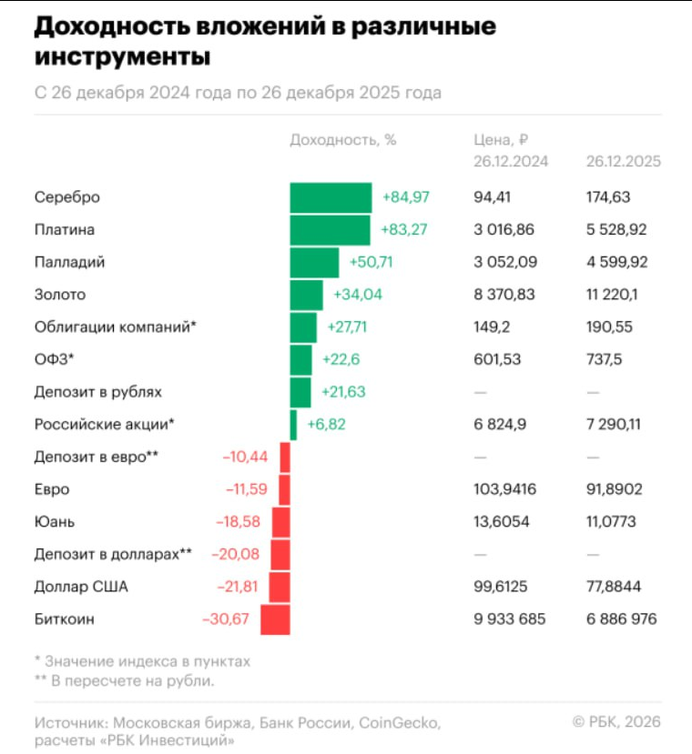 📈 РБК по традиции опубликовала топ активов по доходности и убыточности за 2025 год в рублях