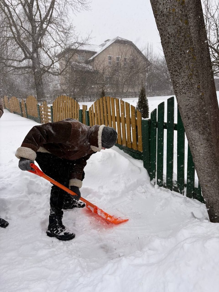 Татьяне Николаевне Карпеченко в уборке снега. ✅Молодые люди с энтузиазмом взялись за дело, чтобы облегчить быт ветерана и показать, что память о героическом прошлом живет в сердцах молодежи. #хватайтесьзалопату #ПоможемкоммунальщикамШклов