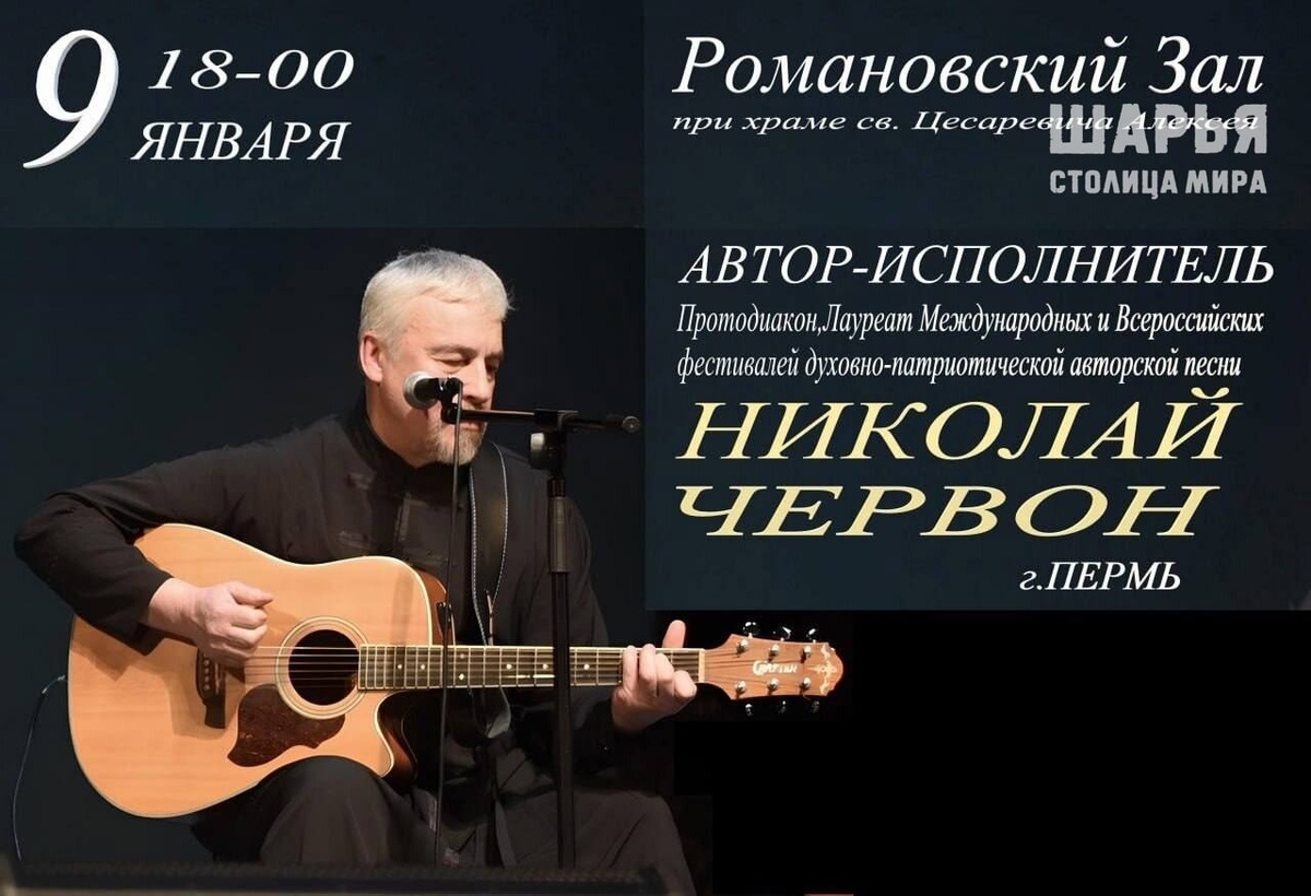 В Романовском зале с 18.00 выступит автор-исполнитель протодиякон, Лауреат Международных и Всероссийских фестивалей духовно-патриотической авторской песни Николай Червон из г. Пермь. Не упустите возможность окунуться в мир светлого и духовного творчества. Все композиции Протодиакон пишет сам, исполняет с душой, аккомпанируя себе на гитаре. Вечер пройдет на одном дыхании. Напомним, Романовский зал расположен по адресу: Шарья, ул. П.Морозова, в храме цесаревича Алексия. Шарья – столица мира Крупнейшее городское СМИ Источник: Открыть