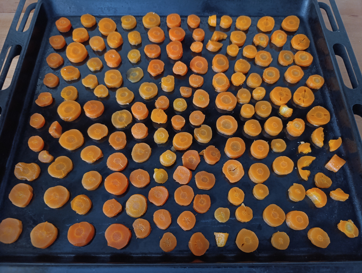 Вчера немножко пошуршала по хозяйству. Сделала сухарики из старого хлеба, а потом морковные цукаты (без сахара, просто подсушенная варёная морковь). Морковка очень сладкая, например, в салат со сметаной из неё я сахара не добавляю, вкусно и так. Сорта я сажаю "Нантская 4" и "Шантенэ Роял".