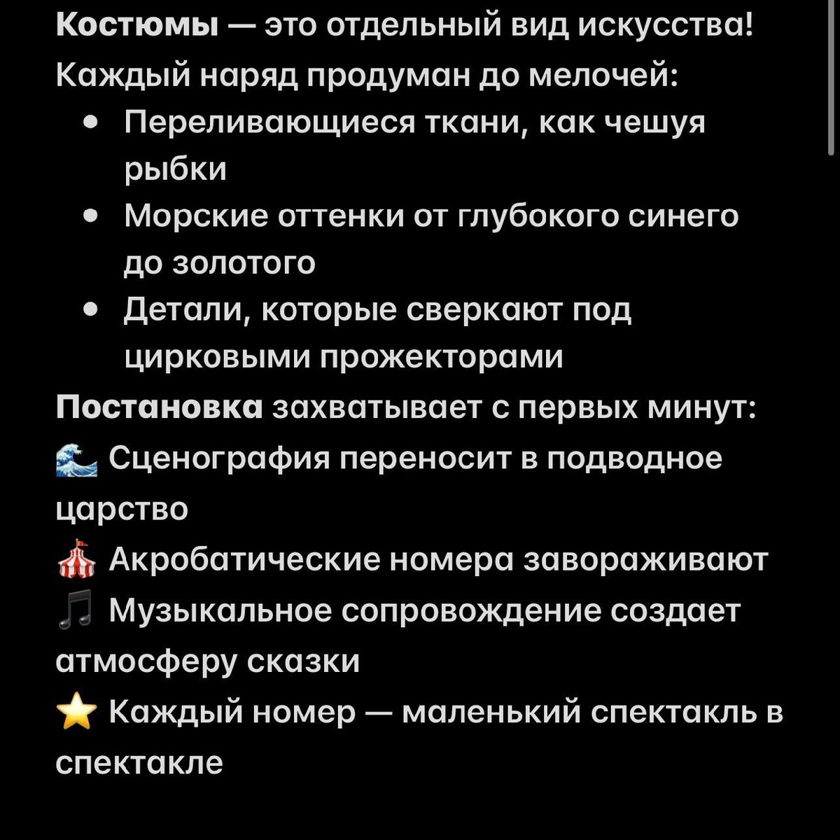 " Только что побывала на невероятном представлении цирка Запашных — "Сказка о золотой рыбке"! 🐠✨ 💫 РЕКОМЕНДУЮ: Если у вас есть возможность — обязательно сходите! Это не просто цирковое представление, а полноценный спектакль, который дарит эмоции и вдохновение. Особенно рекомендую тем, кто: •Любит качественные постановки •Ценит красивые костюмы •Хочет окунуться в сказку •Ищет вдохновение для творчества А вы были в цирке в последнее время?Поделитесь впечатлениями! 👇 #циркЗапашных #сказкаозолотойрыбке #цирк #постановка #костюмы #искусство #вдохновение #театр #представление #магия #эмоции #качественноеискусство 🎭 Иногда взрослым тоже нужна сказка! ✨