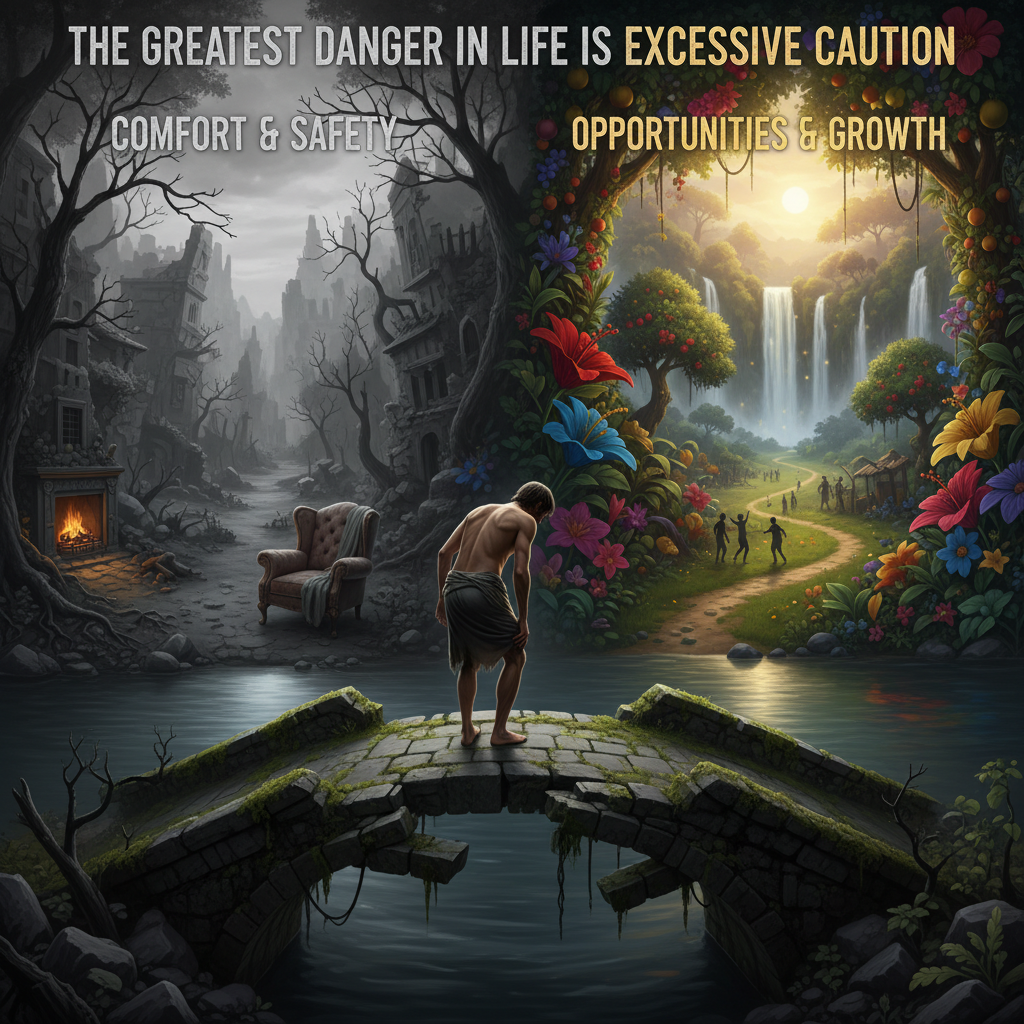 По сути, речь идет о том, что боязнь рисков и стремление избежать возможных неудач становятся самыми большими препятствиями на пути к успеху и самореализации. Человек, живущий исключительно осторожно, ограничивая себя рамками безопасности, упускает множество возможностей и шансов испытать новые грани своего потенциала.
