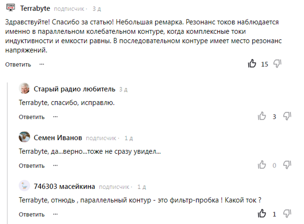 В комментариях к статье "Еще одна простая схема от В.Т. Полякова" возникла маленькая дискуссия: Нужно как-то определиться. На рис. 1а - последовательный колебательный контур, а на рис. 1б - параллельный колебательный контур. Резистор R - это эквивалент активного сопротивления катушки. Сравним свойства двух этих разновидностей контуров: Ну что, Масейкина права? Все не так просто, Масейкина :))! Резонанс напряжений происходит в последовательном колебательном контуре! Как это объяснить? А резонанс токов — происходит в параллельном колебательном контуре Как это объяснить? Вот такая вот диалектика! Так что спасибо Terrabyte за науку! Всем здоровья и успехов!
