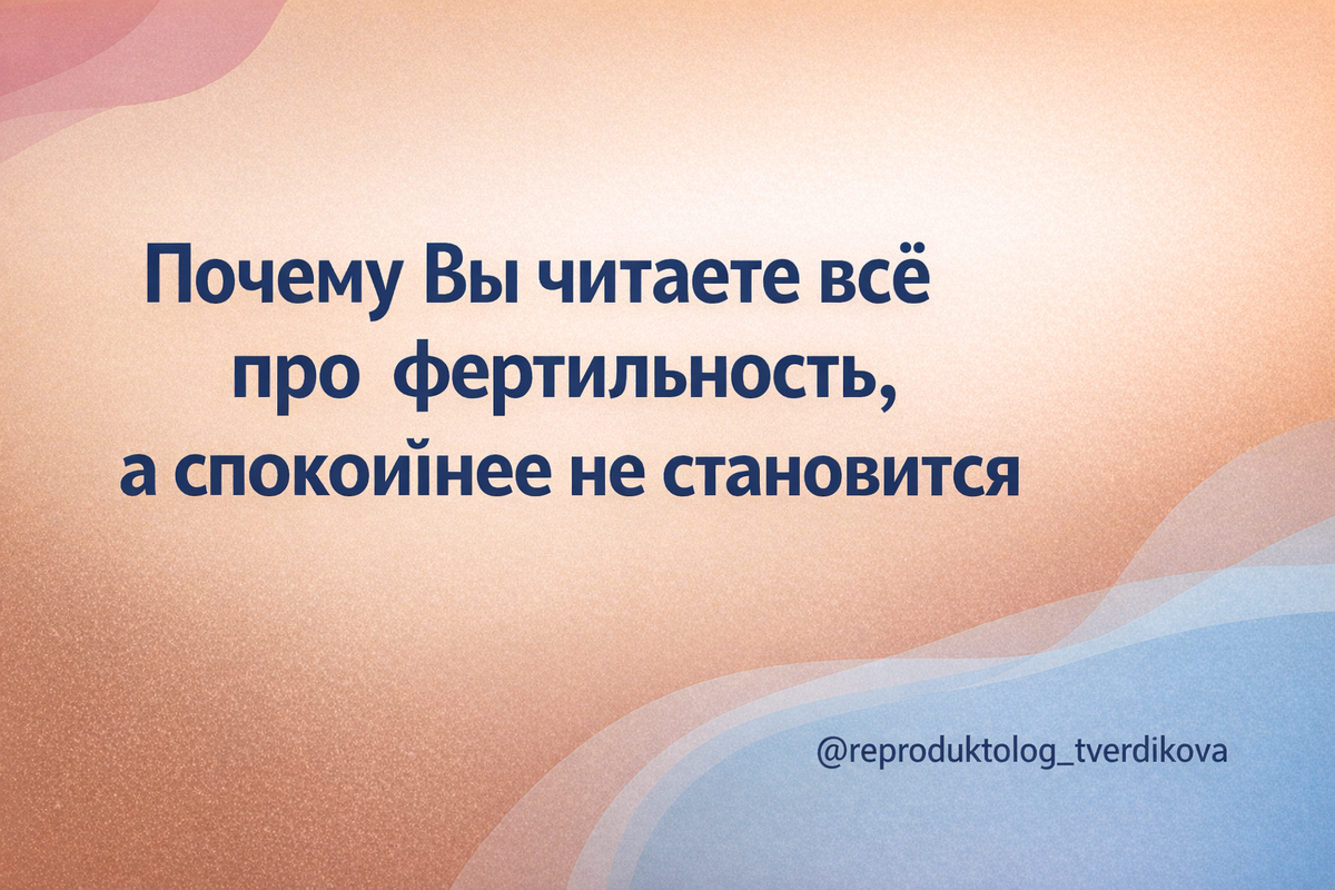 Вы читаете про RIF, ERA-тест, инозитол при СПКЯ, нормы прогестерона… а внутри не появляется опора. Только усталость и глухая тревога: «я что-то упускаю». Давайте разберёмся, почему мозг выбирает «контроль через чтение», как информационный шум превращается в паническую воронку — и что реально возвращает спокойствие. Автор статьи – Мария Твердикова, врач-репродуктолог, коуч ICF по вопросам фертильности и репродуктивного здоровья , автор ТГ-канала "Фертильный путь: Коучинг от репродуктолога" Три часа ночи. Телефон светится в темноте. Вы «на минуточку» открыли форум — и вот уже читаете про RIF (повторные неудачи имплантации) или ищете, какая дозировка инозитола при СПКЯ помогла кому-то в 2018 году. И ведь Вы не новичок.