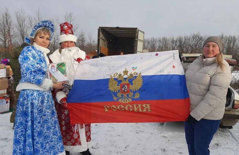 Подарки и декабрьскую партию гуманитарки вместе с добровольцами привезли Дед Мороз и Снегурочка Помощь получили шесть подразделений Армии России, среди которых – штурмовики, танкисты, операторы БПЛА, и медицинская часть, над которыми постоянно шефствует «Святогор». В поездку на этот раз отправилась большая группа волонтёров: заместитель руководителя Сальского филиала БФ «Свягогор» Татьяна Омелечко, глава администрации Сандатовского сельского поселения Николай Сероштан, предприниматель и волонтёр из Краснодарского края Александр Кузуб, старшие волонтёрских групп «Святогора» — Алина Галушко («Гуманитарные войска»), Евгений Мирошниченко («Два бойца»), Ольга Сидорова («Березовчанка»). Николай Сероштан исполнил роль Деда Мороза, а Алина Галушко – Снегурочки. Главные герои любимого праздника вручили нашим бойцам новогодние подарки, открытки, детские письма и рисунки и даже рукописные иконы. Всё это помогло создать ощущение праздника парням, которые встречают Новый год не дома, рядом с родным
