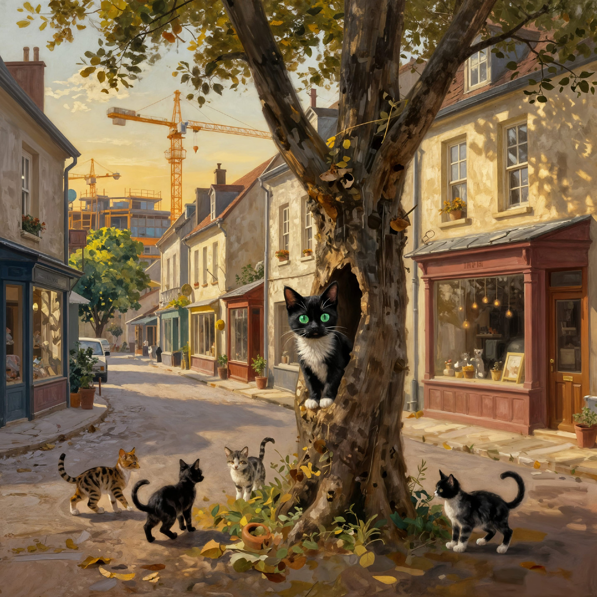 Я хочу рассказать о своей жизни — такой странной, перепутанной, будто клубок ниток, который кто‑то нарочно растрепал. Начну с самого начала… или с того, что мне удалось удержать в памяти. Помню темноту. Тёплую, плотную, пахнущую землёй и сырым мхом. Мы жили под старым деревом — я, братья, сёстры и мама. Она была мягкой, как облако, и тёплой, как печка в мороз. Её мурлыканье звучало, как песня: низкое, ровное, убаюкивающее. Я прижимался к её боку и чувствовал, как время тает, словно сахар в молоке. Но больше всего я запомнил запах. Сырость. Холод. И всё же — безопасность. Теснота под корнями казалась крепостью. Мы жмурились в полумраке, а снаружи шёл дождь, стуча по коре, как чьи‑то осторожные пальцы. Я был самым трусливым из котят. Пока остальные толкались, пытаясь выбраться наружу, я забивался в угол и смотрел на них с тревогой. Они смеялись надо мной — фыркали, пихали лапами: «Ты что, боишься света?» А я боялся. И это спасло мне жизнь. Со временем она стала уходить. Сначала на минуту