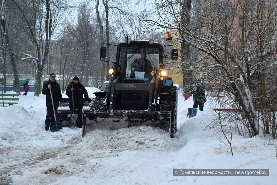 В районе дома №11 сотрудники коммунального сельскохозяйственного унитарного предприятия «Полесье» совместно со спецтехникой расчищают проезд и дворовую территорию от свежевыпавшего снега. #Поможемкоммунальщикам Подпишитесь на Гомельские ведомости