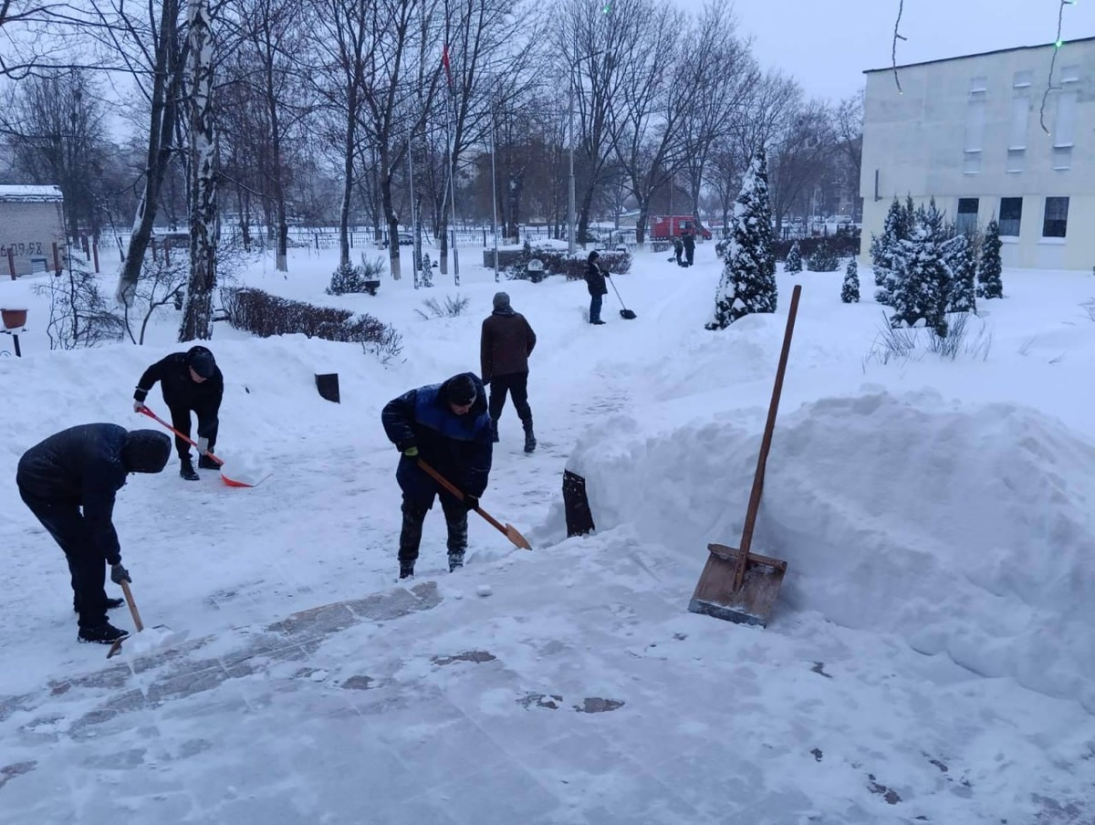 Дружно взялись за расчистку снега работники государственного политехнического колледжа в Лунинце. Посмотреть