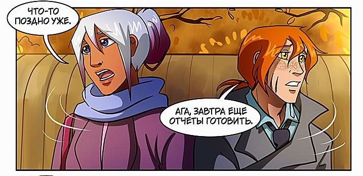Сегодня вас ждёт заключительная часть 8-го тома "Моего странного напарника". Он является прямым продолжением событий из других, ранних комиксов. Я понимаю, что прошло уже довольно много времени, опять же, новые читатели, возможно, не читали данные тома, так что коротко буду давать пояснения по сюжету и персонажам во время повествования. Прошлые части истории происходили в Древнем Египте: 1) Ловушка для богов в террариуме. 2) Прошлое и будущее сына Анубиса. А действие следующих эпизодов происходит уже в наши дни: 3) Истребитель нечисти в гостях у оборотней. 4) Для Сета микроволновка вполне себе конкурент. Кадры из прошлого выпуска. Рик помог Норе с переездом на новую квартиру. У них состоялся очередной задушевный разговор. Дочь Анубиса приоткрыла для парня завесу тайны: его отчим был из богов. Правда кое-что она всё-таки утаила: где именно прячут захваченного в плен Сета. Команда охотников на нечисть работает в том же спецуправлении полиции, что и напарники Ричард и Нора. Глава истреби