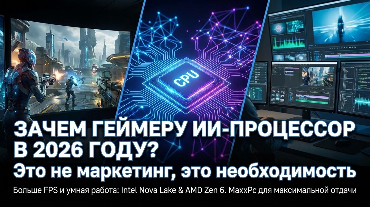 Еще пять лет назад при выборе процессора мы задавали одни и те же вопросы: «Сколько ядер?», «Какая частота в турбо-бусте?» и «Раскроет ли он видеокарту?». В 2026 году правила игры изменились. Если сегодня вы придете в магазин и спросите про гигагерцы, на вас посмотрят как на динозавра. Главная метрика современности — TOPS (Trillions of Operations Per Second, или триллионы операций в секунду). Многие до сих пор думают, что приставка «AI» (ИИ) в названиях новых чипов Intel и AMD — это просто маркетинговая уловка, чтобы продать железо подороже. Спойлер: вы ошибаетесь. Сегодня разбираем, почему без мощного нейронного блока (NPU) ваш новый ПК морально устареет уже через полгода. Процессоры поколений Intel Nova Lake и AMD Zen 6 принесли революцию, которую мы ждали. Они перестали быть просто «калькуляторами» для физики и геометрии. Теперь у них есть отдельный мозг — NPU, который берет на себя задачи искусственного интеллекта. Что это дает в играх?