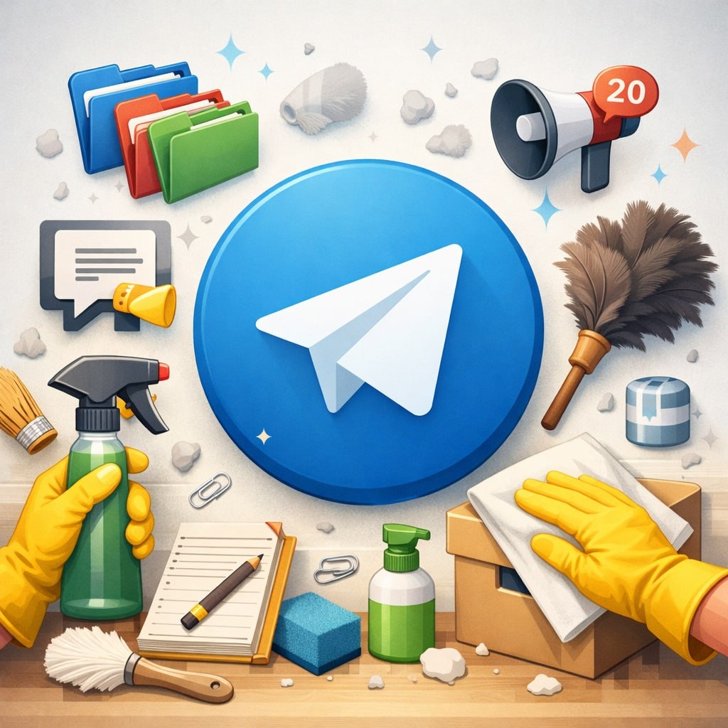 😜🤗 Сегодня у нас такая темка: готовим свой Telegram к рабочему году. Telegram, как и любое рабочее пространство, при активном использовании неизбежно зарастает. Сообщениями, каналами, папками, ботами. В какой-то момент он перестаёт помогать и начинает мешать: внимание расползается, нужное находится не сразу, задачи решаются дольше, чем могли бы. Начало года — удобный момент сделать простую, но полезную вещь: провести ревизию своего Telegram-пространства и вернуть ему рабочую структуру. Первое — папки. У вас же всё разложено по папкам, я надеюсь? Имеет смысл честно посмотреть на их состав: помогают ли они ориентироваться или просто существуют по инерции. Папки, которыми давно не пользуются, обычно не оживают сами по себе. А актуальные — часто требуют пересборки под текущие задачи, а не под прошлогодние планы. Второе — каналы, чаты и боты. Активная лента — это информационная диета. Если источник за долгое время ни разу не оказался полезным, он уже сделал всё, что мог. Telegram хор