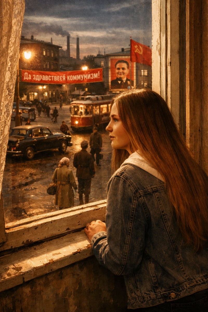 Катя проснулась от солнечного света. Он был непривычно тёплым и спокойным. За окном не было ни дыма, ни прожекторов. Узкая улица тянулась между невысокими домами, кое-где ещё с потемневшими от времени и огня стенами, но окна были целы, а на верёвках сушилось бельё.