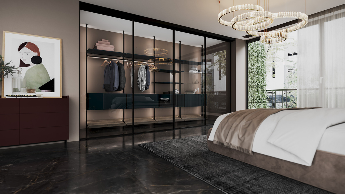 «Ниша. Двери-купе. Внутри — полки, ящики и штанги». Все это — не фантазия, а одна стеллажная система, адаптированная под разные задачи. Здесь система становится открытой гардеробной. Все — от повседневной одежды до постельного белья — на виду, но в идеальном порядке. Нет глухих фасадов, за которыми «что-то лежит». Есть логика, легкость и утреннее спокойствие. Вместо громоздкого шкафа — легкая композиция для книг, виниловых пластинок или керамики. Скрытая подсветка подчёркивает детали. Цвет профиля (латунь, серебро, чёрный) связывает всю композицию в единое целое. Это не мебель. Это выставка вашего вкуса. Здесь система — практический центр дома. Штанга для пальто, полки для обуви, ящики для ключей и перчаток. Всё организовано так, что утром вы не ищете второй ботинок, а вечером — место для зонтов. И при этом даже в маленькой прихожей — никакого «давления». В открытой планировке глухие перегородки убивают свет. А стел