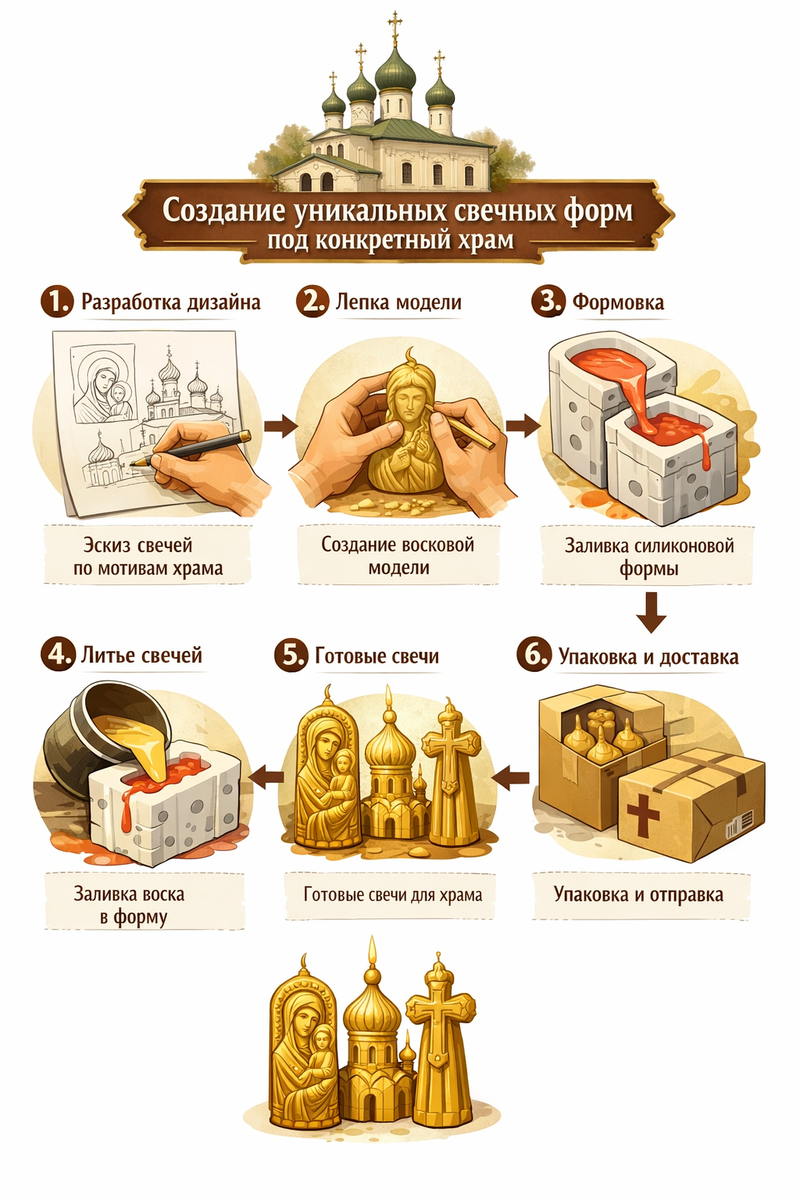 У каждого храма — свой ритм, своя высота подсвечников, свой поток прихожан, своё время горения. Типовая форма здесь не работает.