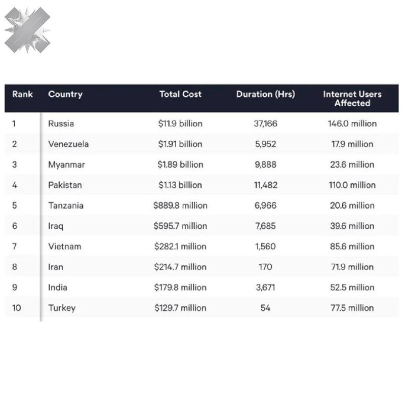 За 2025 год в стране зафиксировали 37 166 часов перебоев, затронувших 146 млн человек. Экономический ущерб от блокировок и ограничений оценили в $11,9 млрд – больше, чем у всех остальных стран вместе взятых. Россия обогнала Пакистан, Мьянму и другие страны более, чем втрое, по продолжительности отключений. ⚡️ Подписаться на IT-новости