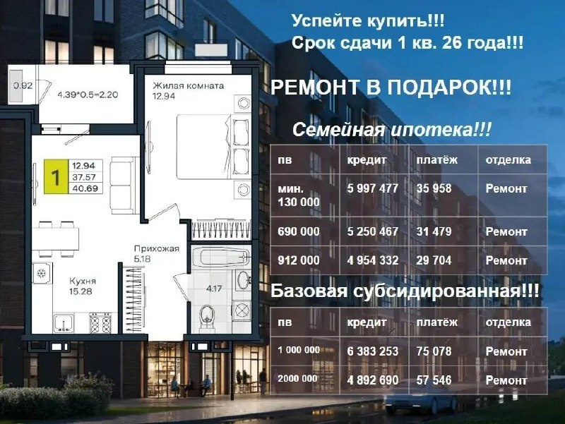 ️ Что мы можем успеть купить без ПЕРВОГО ВЗНОСА ПО семейной ипотеке ? Жилой комплекс в пригороде Краснодара Ну все пригороды становятся современным городом, мы то знаем 😊 и там нет курятников, как в центре )) ✅ Сдача 1кв 2026г 🏗️ 3,83 ГА застройки 🌆 4 дома по 8 этажей 🏢 616 квартир, от 4 до 9 на этаже 🅿️ 639 парковочных мест 🛍️ Коммерция на 1 этаже где будет всё для комфортной жизни ⛔️ Двор без машин 🌿 Собственный сквер ⛹️ Спортивныая площадка 🛝 Игровые площадки для детей 💆♂️ Зоны отдыха 🚶Прогулочные аллеи 🚴♀️ Велодорожки 🚲 Крытый велобокс на территории ⬅️➡️ Сквозные подъезды 🔐 Закрытые колясочные 📹 Круглосуточное видеонаблюдение 🛗 Лифт премиального качества 🔥 Комфортные планировки 🔥 Просторные кухни 🔥 Большие лоджии 🏫 Детские сады 57, 220 🏫 Школы 50, 67, 107 🏫 Ведется строительство школы на 1 550 мест рядом с комплексом 🏥 Поликлиника 8 🏟️ 15 мин до «Город спорта» 🏬 18 мин до ТРЦ «Красная площадь» 🏞️ 5 минут до Городской парк «Сосновый» Есть возможность