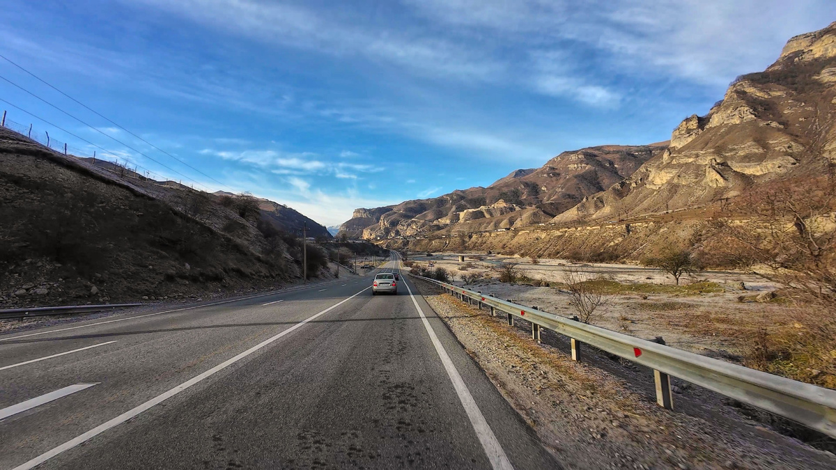 Первый и последний раз мы сюда приезжали 2 января 2025, тогда нам рассказали, что эта дорога летом еще хуже и мысль посмотреть на эти места без снега плотно засела в голове))) Потом пришла весна, со снегами и холодом – никуда не проехать))) Потом наступило лето, в июне в горах шел снег и отступать не собирался))) Ну а в июле и августе (вот такое короткое лето в горах!))) у нас планов было слишком много, чтобы впихнуть невпихуемое))) К тому же, по рассказу нашего друга, мы поняли, что поездка в это ущелье летом еще и довольно опасна, из-за постоянных сходов селей – можно заехать, а потом не выехать, пока дорогу не расчистят, а тут смотря какой сель сойдёт, может и пару лет пройдёт))) В итоге прошла и осень, а мы всё собираемся посмотреть ущелье без снега… Видимо специально для таких занятых людей как мы, снег решил отложить свой приход в эти края и поездка случилась! Не изменяя традиции, поехали мы с тем же самым другом, что и в прошлый раз, тем более что дорогу эту он знает как свои пять пальцев! Кстати, если бы ехали без него, нас бы лесники не пустили, мы их встретили как раз на пути. Так что, для нас всё сложилось удачно!