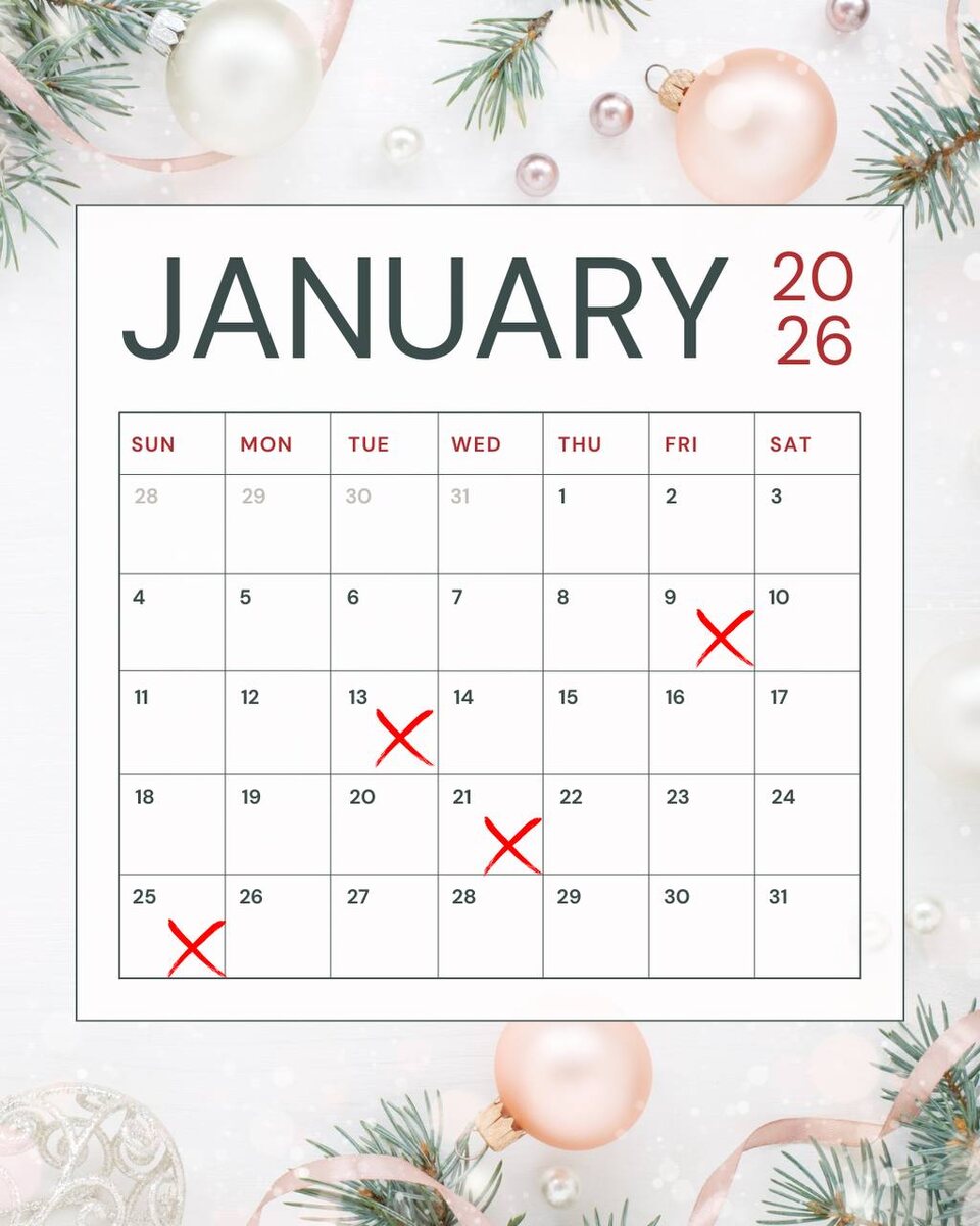 Даты, на которые не рекомендуется планировать никакие важные дела в январе. Отмечайте в своем календаре.