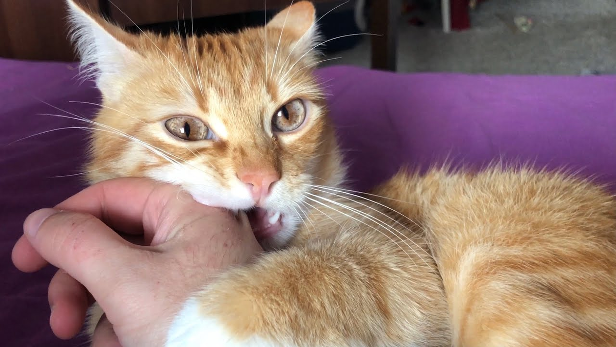 — При попытке нападения — резкий и неприятный звук (шипение, строгое «Шш!», хлопок в ладоши), а человек должен замереть и игнорировать кота.