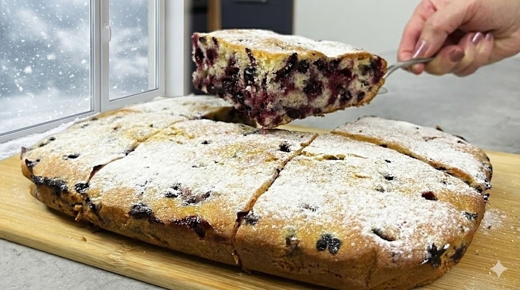 Добрый день, друзья! Смотрю в окно — а там всё замело, метель не утихает. В такую погоду самое лучшее решение — остаться в тепле и уюте. Самое время испечь что-нибудь вкусненькое. 🌨️🏠 Поэтому я решила снова приготовить наш любимый пирог с замороженными ягодами. Я уже делилась им с вами, но такие рецепты — настоящая палочка-выручалочка. Пусть метель за окном шумит, а у нас на кухне будет по-летнему вкусно и очень тепло от домашней выпечки. 🍰☕ Как готовить: В миску разбиваем 2 яйца, добавляем 1/3 чайной ложки соли, 160 граммов сахара и перемешиваем венчиком. Добавляем 8 столовых ложек растительного масла, 8 столовых ложек кефира и перемешиваем. Добавляем 240 г муки, 10 г разрыхлителя и замешиваем тесто. Вынимаем черную смородину из морозилки (размораживать ягоды заранее не нужно). Добавляем к ягодам столовую ложку муки и перемешиваем. И теперь добавляем ягоды в тесто и снова перемешиваем. Выкладываем тесто в форму. Отправляем в заранее разогретую духовку до 180°С на 40 минут. Вынимаем
