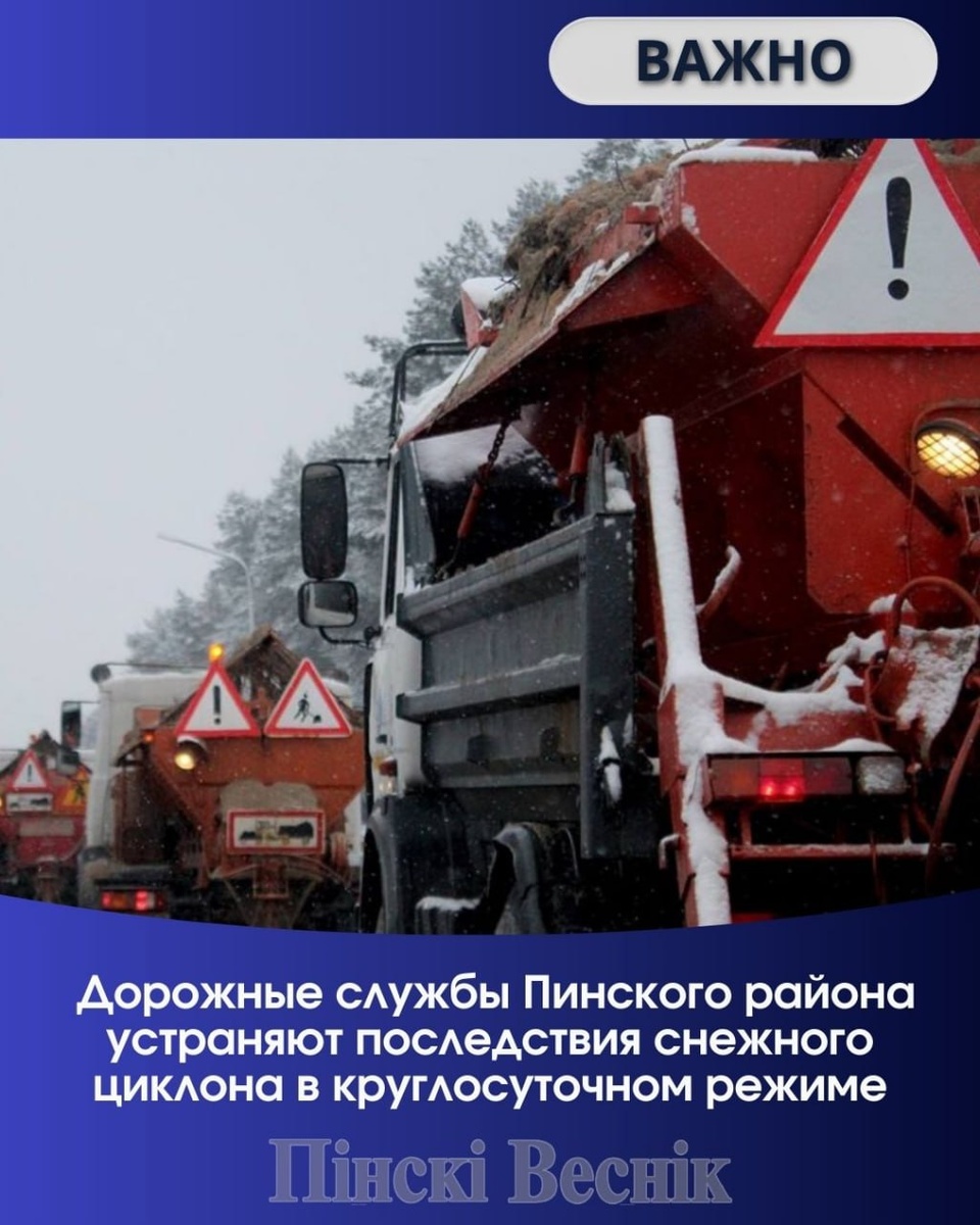 ☑️Дорожные службы Пинского района устраняют последствия снежного циклона в круглосуточном режиме
