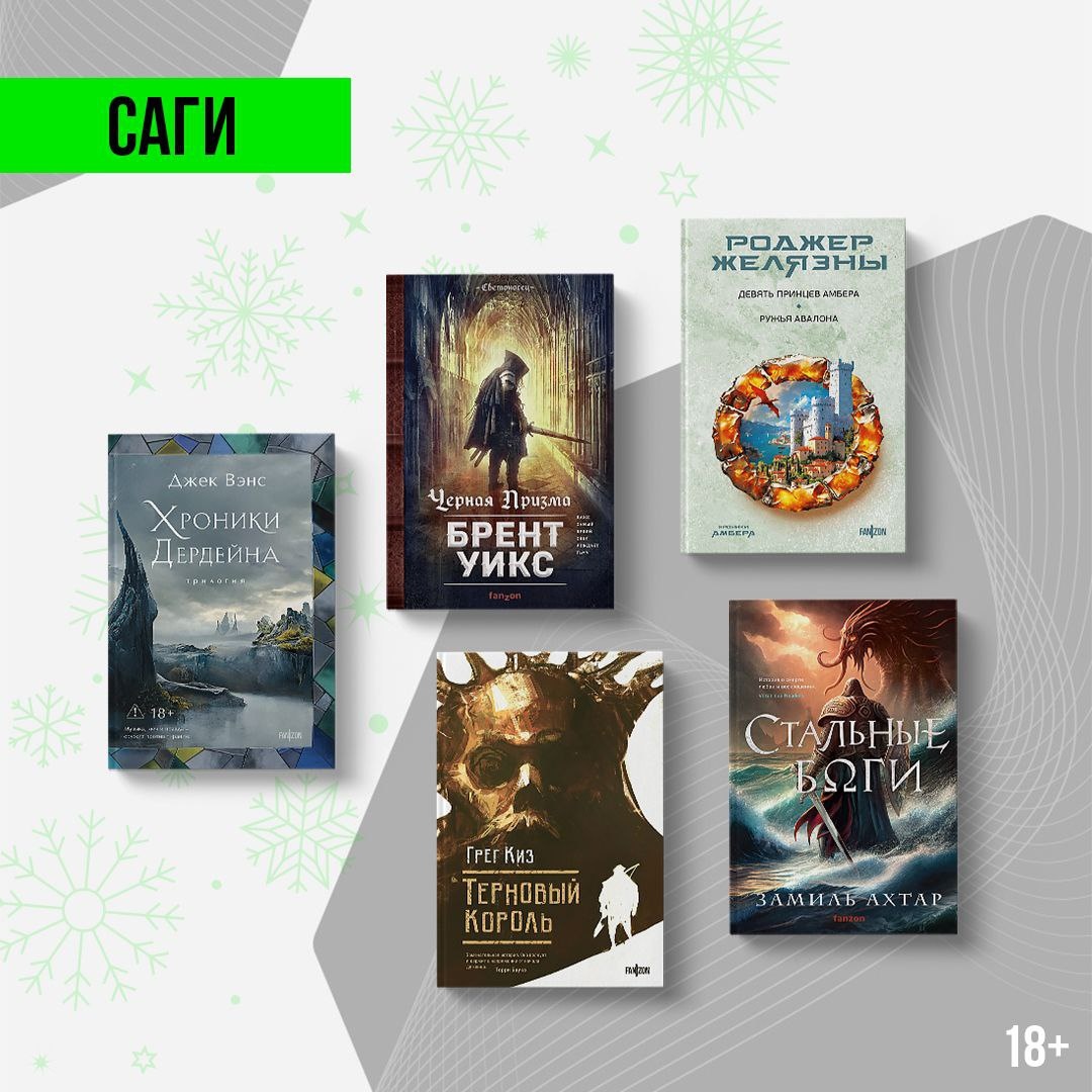 ! Делимся подборкой наших саг — в каждом из этих циклов не менее трех книг. 📖 «Хроники Дердейна», Джек Вэнс (омнибус с трилогией) 📖 «Черная призма», Брент Уикс 📖 «Девять принцев Амбера. Ружья Авалона», Роджер Желязны 📖 «Терновый король», Грег Киз 📖 «Стальные боги», Замиль Ахтар «Незаконное потребление наркотических средств, психотропных веществ, их аналогов причиняет вред здоровью, их незаконный оборот запрещен и влечет установленную законодательством ответственность»