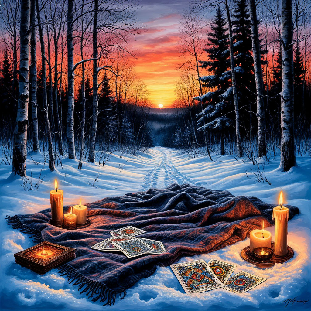 Три подружки, всем было лет по 15, пошла гадать в лес. Были новогодние каникулы, и девочки проводили их в деревне у бабушек. Полина — голубоглазая блондинка с пухлыми губами. Рита — настоящая красавица с восточным акцентом во внешности, длинными черными волосами. И Варя — зеленоглазая рыжая девочка, яркая, заметная. Темнело рано, и девочки отправились узнавать свое будущее часа в 4 после полудня. Они не заходили далеко в лес — страшно ведь, да и снег глубокий, идти тяжело. Разложили старое покрывало, прихваченное у одной из бабушек, на покрывало поставили свечи, разложили карты. На что могут гадать пятнадцатилетние девчонки? На женихов, конечно. Каким будет тот самый. Может, это Колька из параллельного класса? Или Женя с третьего этажа? Внутри девочек всё трепетало в ожидании ответов. Каждую охватывали страх перед мистикой, неизвестность темного леса, но любопытство брало верх над опасениями. Деревья отбрасывали зловещие тени, ветерок колыхал пламя свечей, каждый звук наводил ужас. Г