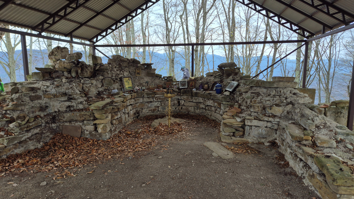 Всем привет! Путешествие на гору Сахарная головка расположенную в Адлерском районе Сочи мы начали из села Голицыно. Высота горы составляет 634,1 метра (в некоторых картах указана другая высота — 633,9 метра). Дорога резко идет вверх и подъем на гору занимает добрый час неспешной прогулки. Целью нашего посещения был храм, открытый в 1954–1956 гг. сочинским краеведом Игорем Константиновичем Недолей. В 1956 г. Н.В. Анфимов осмотрел храм, снял его глазомерный план, сделал зачистку внутреннего фаса апсиды и ввёл его в научный оборот. В 2007–2008 гг. Сочинский отряд археологической экспедиции ИА РАН под руководством Е.А. Армарчук провёл археологические исследования. Альтернативные названия памятника, фигурирующие в научной литературе: храм на горе Лацинуха, храм у с. Каменка, храм у с. Липники. Храм на Сахарной Головке - зальный. Площадь храма (внутренняя, без учета притвора): 28,3 кв.м. Храм расположен на вершине горы Сахарная головка (633 м) в Адлерском районе, в 1,3 км к северу от п. Лип
