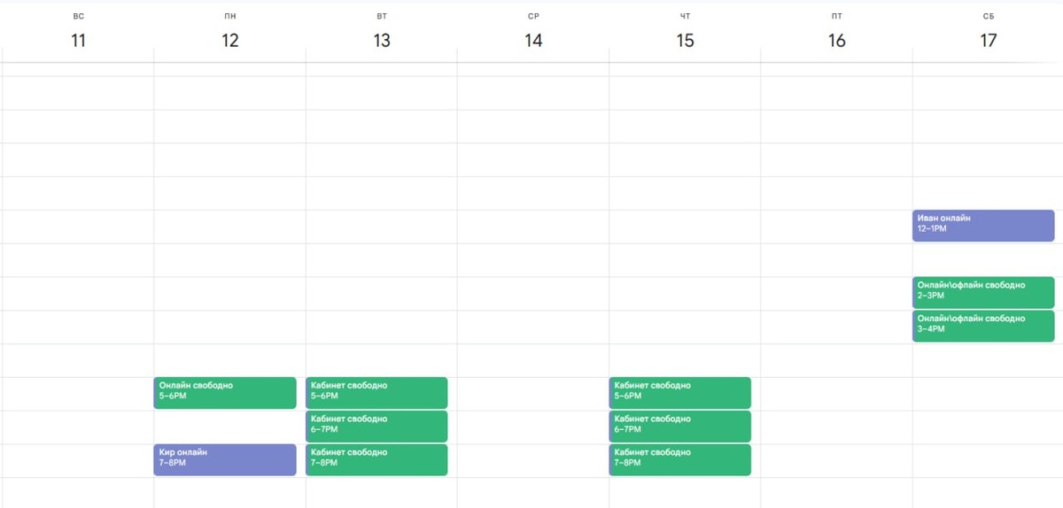 А именно появился календарь! Теперь более наглядны видны окошки! Синим то, что занято, зелененьким свободные окошки (их кстати можно занимать). Консультирую 3 дня в будни, и в субботу!