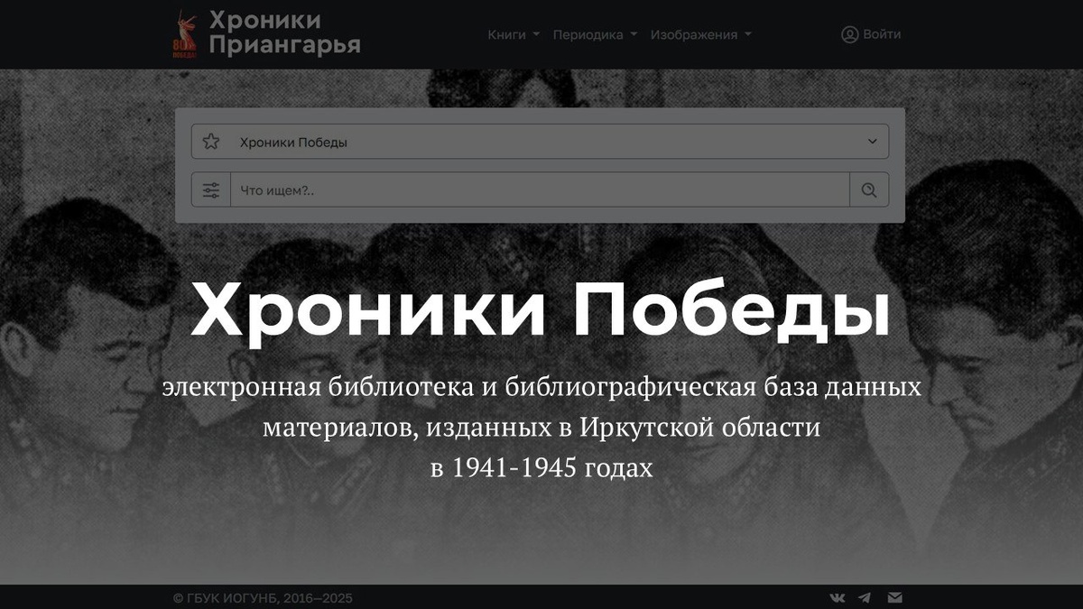 Уже написали, что «Хроники Приангарья» это лишь один из доступных на нашем сайте каталогов. На самом деле это даже не отдельная база данных, а просто часть единого электронного каталога Молчановки. Выборка только тех записей из него, для которых в том или ином виде доступна возможность сразу ознакомиться с цифровой копией документа, не приходя в читальный зал. Таких «баз-фильтров» у нас несколько. С их помощью удобно сегментировать блоки документов по разным признакам (тематике, виду и т. п.) и индивидуализировать под них интерфейс (набор поисковых полей, пункты меню, приоритетность способов обработки поисковых запросов). Мы стараемся не плодить их без нужды, но в этом году не могли не добавить еще одну. База данных «Хроники Победы» (https://i.irklib.ru/vov) это прежде всего результат многолетней работы библиографов Молчановки, детально расписавших газету «Восточно-Сибирская правда» 1941-1945 годов. «Расписывать» с библиотечно-библиографического переводится как «создавать библиографич