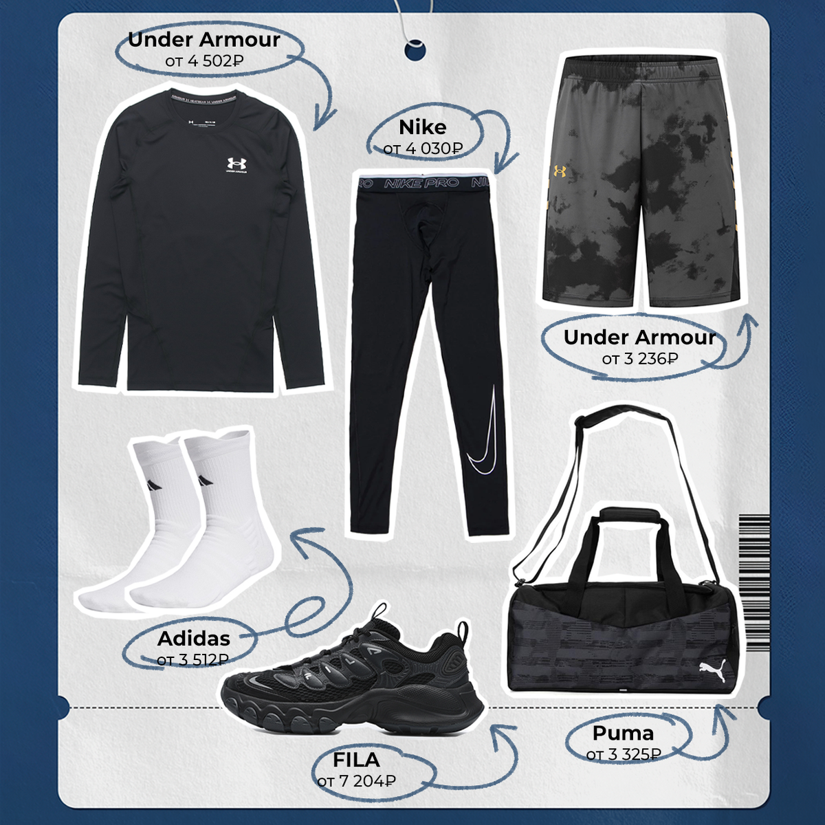 Все от классных брендов — в таком тренироваться будет одно удовольствие. И фоточки в зеркало с банками делать. Under Armour, цена от 4 502₽* Nike, цена от 4 030₽* Under Armour, цена от 3 236₽* Adidas, цена от 3 512₽* FILA, цена от 7 204₽* Puma, цена от 3 325₽* *стоимость может изменяться в зависимости от курса и размера Больше интересного на нашем сайте POIZON