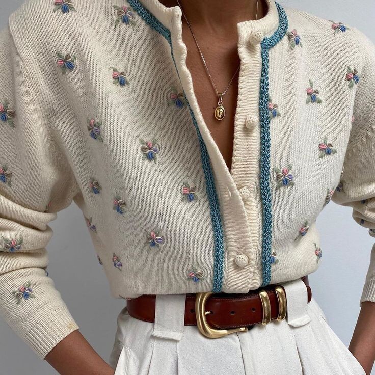 Добрый день, дорогие рукодельницы! Сегодня я подготовила подборку для вдохновения, чтобы вы могли создать что-то удивительное, весеннее с вышивкой. Я долго наблюдаю за моделями в стиле прованс, на которых, как правило, используется интересная вышивка. Это замечательный способ освежить старый джемпер, который кажется вам скучным, и просто придать ему новый вид с помощью цветочных вышивок. Я собрала 8 моделей с вышивкой и несколько милых носочков, один из которых, с вышивкой, а второй вариант с жаккардом. Я восхищаюсь красотой таких работ! И я добавила несколько схем для вышивки цветочков. Напишите, нравятся ли вам такие идеи! Лично я подыскиваю жакетик в подобном стиле, чтобы носить его весной и летом в прохладные вечера. Модель номер один мне очень нравится - простой кардиган, который можно украсить вышивкой. Выберите бежевый или молочный цвет за основу, и создайте свою красоту! Модели под номером два и четыре тоже отлично подойдут для весны. Пора создавать что-то красивое, весеннее, т