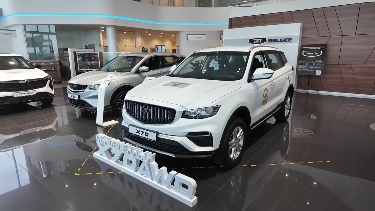 Напоследок мы решили глянуть на старшую модель - кроссовер Belgee X70. Это перелицованный Geely Atlas Pro. Машина серьезная, семейная, с претензией на комфорт. Она оснащается системой мягкого гибрида (48-вольтовый стартер-генератор), полным приводом и турбомотором на 177 сил.