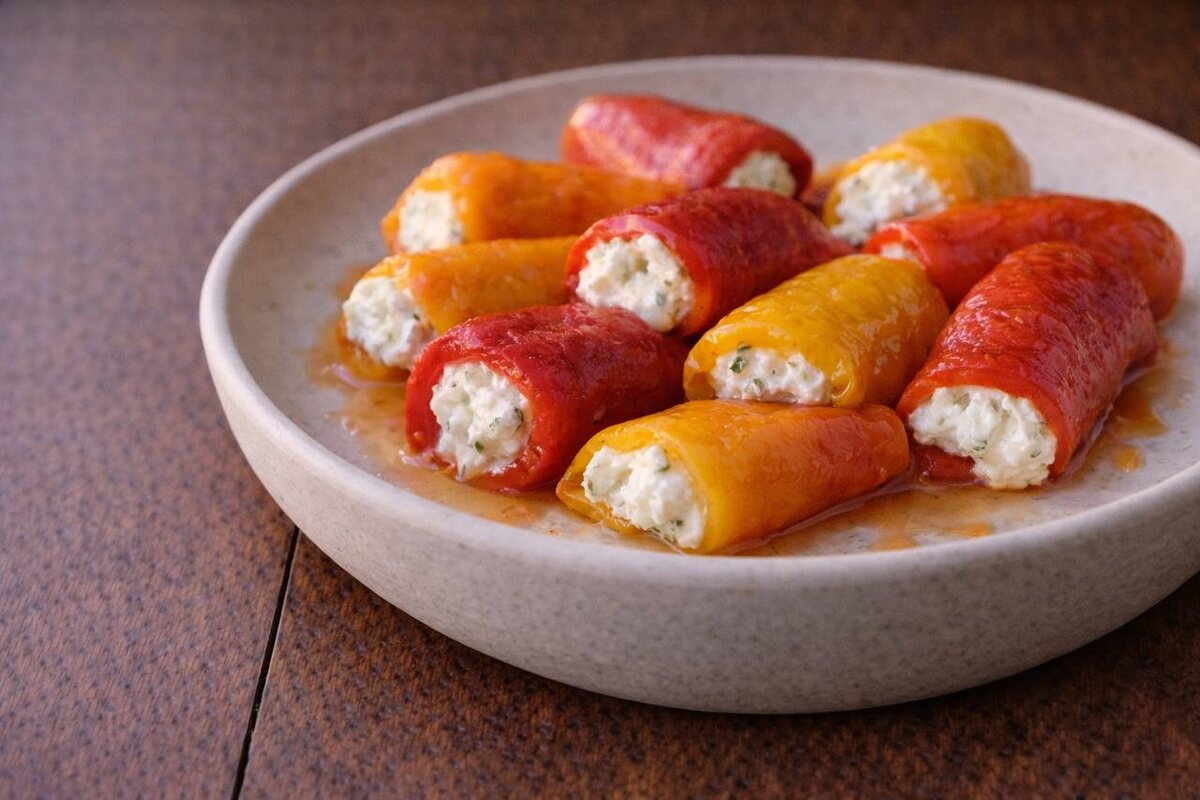 с чесночным кремом (максимально подробно) Мягкий, сладкий перец + нежный чесночный крем. Хороша и как закуска, и как намазка на хлеб. ⸻ 📌 ОБЩИЕ ПАРАМЕТРЫ Сложность: легко Порций: 3–4 Время: ~35 минут Форма: противень + миска ⸻ 🧾 ИНГРЕДИЕНТЫ ПЕРЕЦ • Болгарский перец — 4 крупных (≈600 г) 👉 красный или жёлтый — слаще ❌ зелёный горчит • Оливковое масло — 1–2 ст. л. • Соль — по вкусу ⸻ ЧЕСНОЧНЫЙ КРЕМ • Творожный сыр — 200 г • Сливки 30–33% — 30–40 мл 👉 регулируют плотность • Чеснок — ½–1 зубчик 👉 лучше меньше, чем больше • Соль — по вкусу • Белый перец — по желанию ⸻ 🔧 ПОДГОТОВКА Перец 1. Разогрей духовку до 220 °C 2. Перцы вымой, обсуши 3. Выложи целиком на противень 👉 не режь заранее — сок должен остаться внутри ⸻ 👩🍳 ПОШАГОВО 🔹 ШАГ 1. ЗАПЕКАНИЕ Запекай 20–25 минут, перевернув 1 раз. Ориентиры: • кожица почернела • перец мягкий • внутри много сока ❌ недопечённый перец будет жёстким ⸻ 🔹 ШАГ 2. ОЧИСТКА (ВАЖНО) 1. Переложи горячий перец в миску 2. Накрой