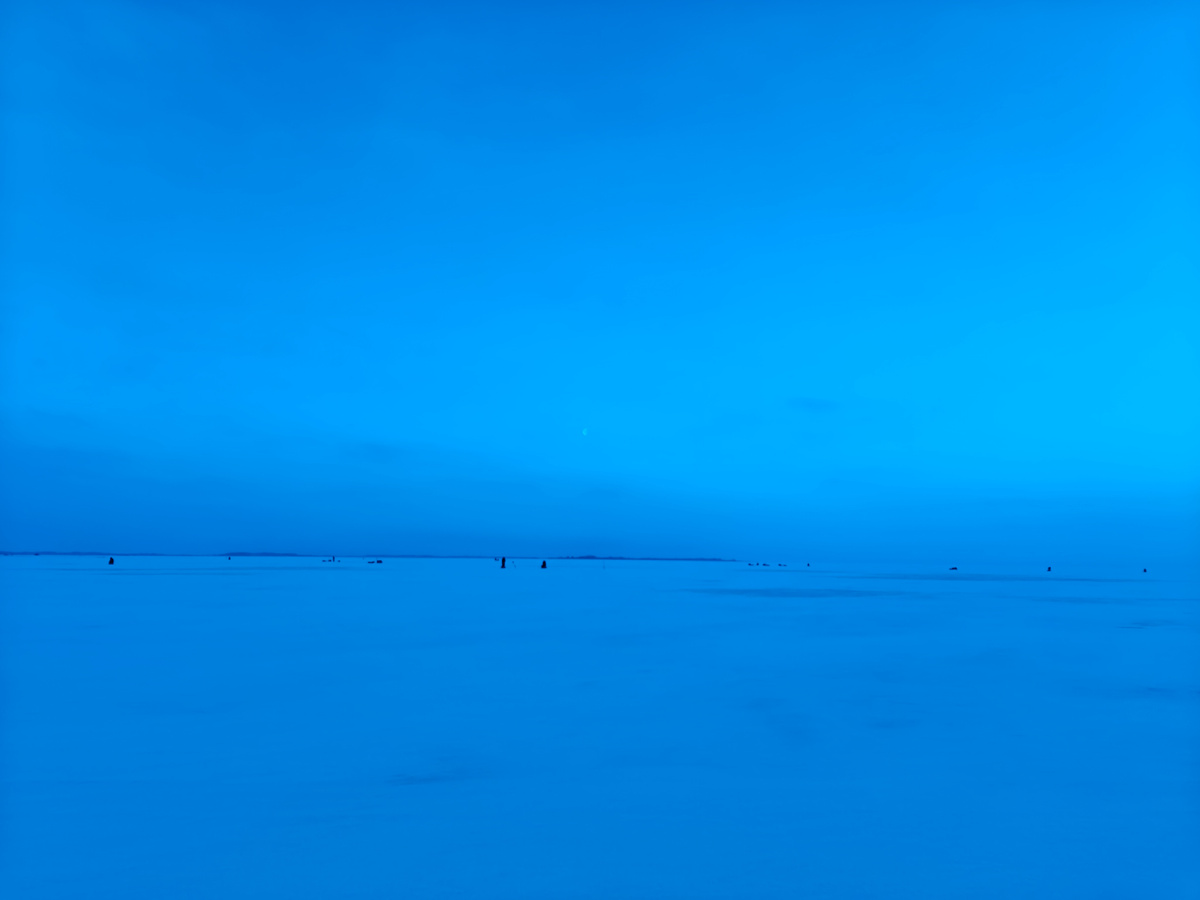В некоторых лунках были подходы рыбы, окунь поднимается за блесной на полметра ото дна, но клевать отказывается.